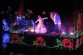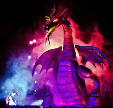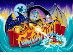 show de projeções em cortina de água, fogos e muitos efeitos especiais, o Mickey lutando contra os vilões da Disney